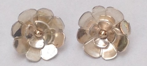 Beautiful Flower Silver Earrings, Michelle cuts each section out of silver sheet, cuts and shapes each piece and then solders them together. Then she finish's them with a Gold ball in the center.