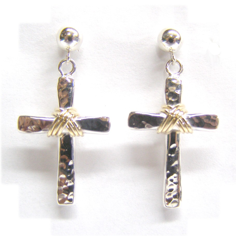 The cross earrings are made in sterling silver with a choice of silver or gold wrap. .